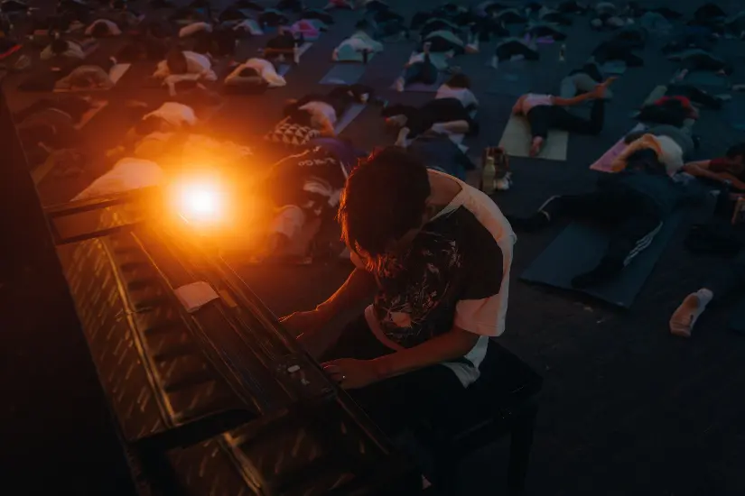 Yin Yoga with live piano by Mattias Devriendt.